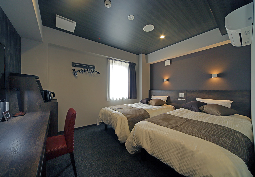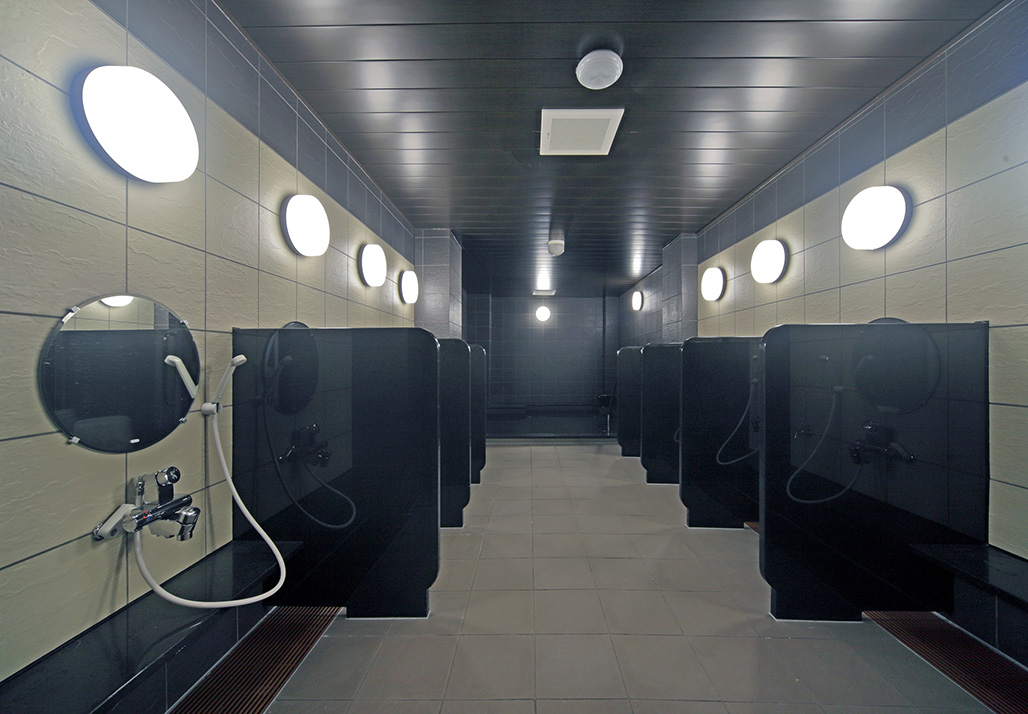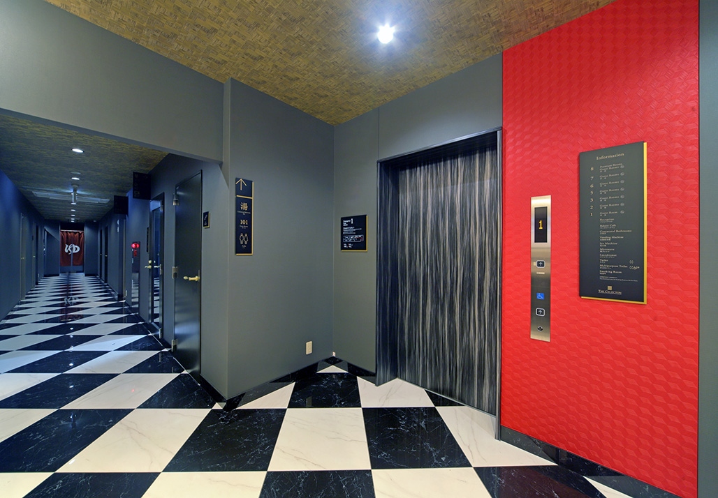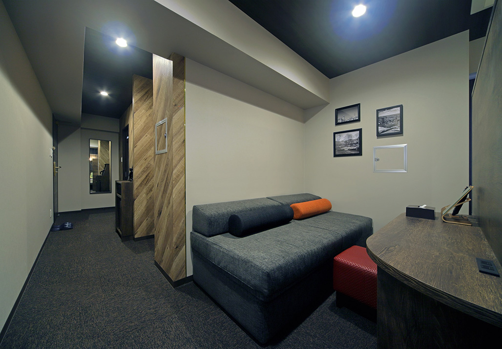 外観は黒とチャコールグレーでシックな色合いで統一しロビー、朝食スペースはアンティークなイメージで洗練された空間を演出しております。また男女別の浴場は一日の疲れを癒していただく為、客室は寛ぎ楽しむ空間になるようにデザインして寝具、家具などを配置しております。